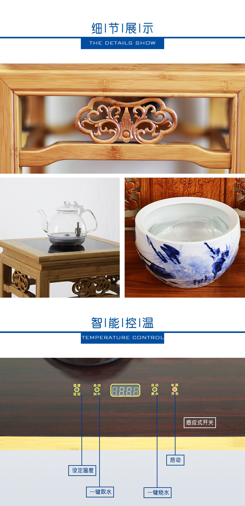 天然毛竹材質(zhì),堅韌、簡約、質(zhì)樸;高硼硅玻璃壺,通透明亮、線條優(yōu)美流暢;手繪陶瓷缸,古典優(yōu)雅、光澤耐久。