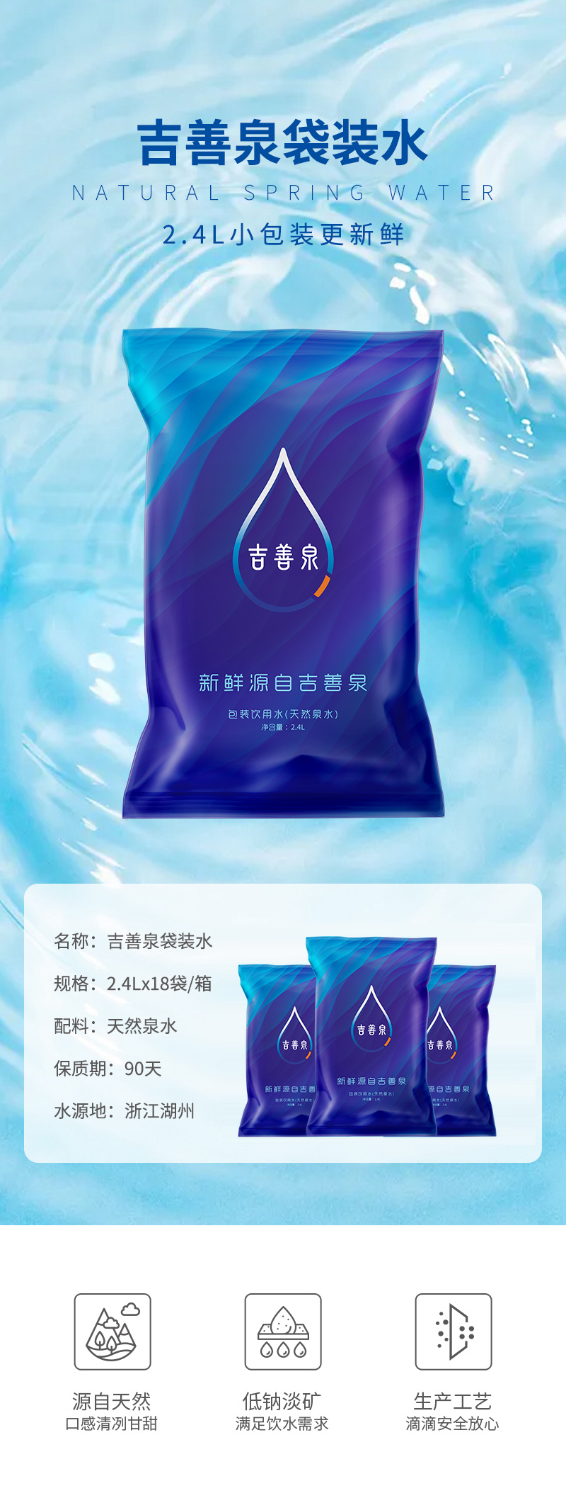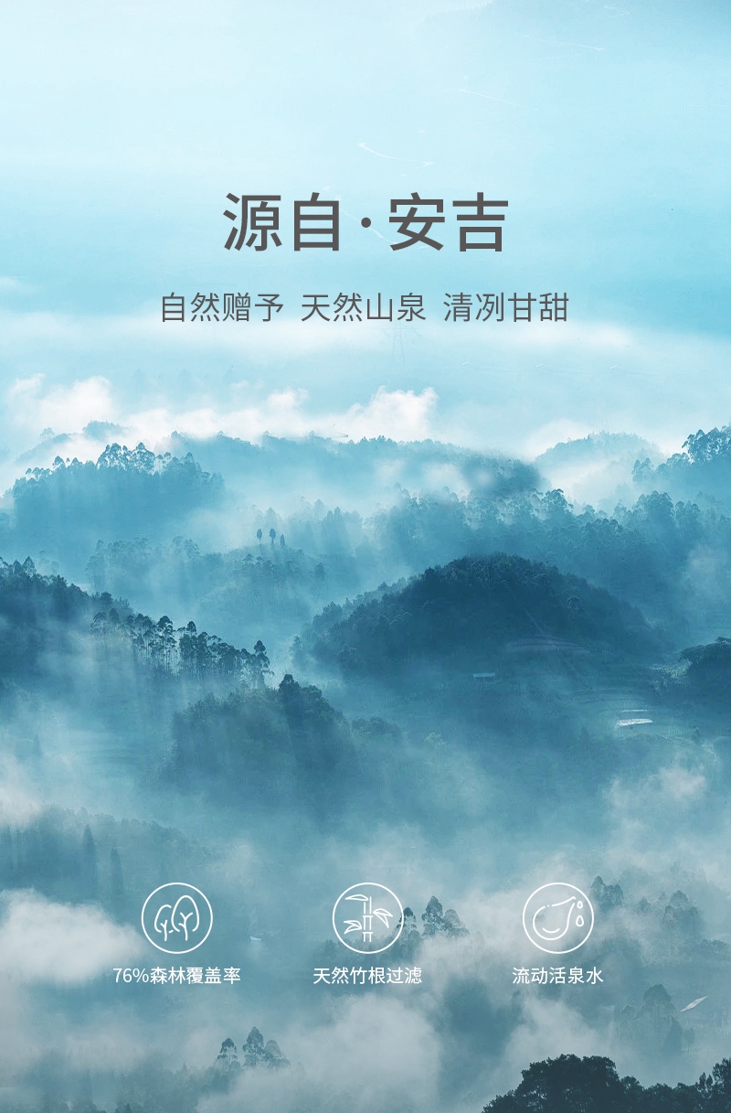 源自安吉竹海的饋贈,良好的生態(tài)環(huán)境,孕育出清冽甘甜的口感,滴滴鮮活,“袋”給全家泉心泉意的愛。