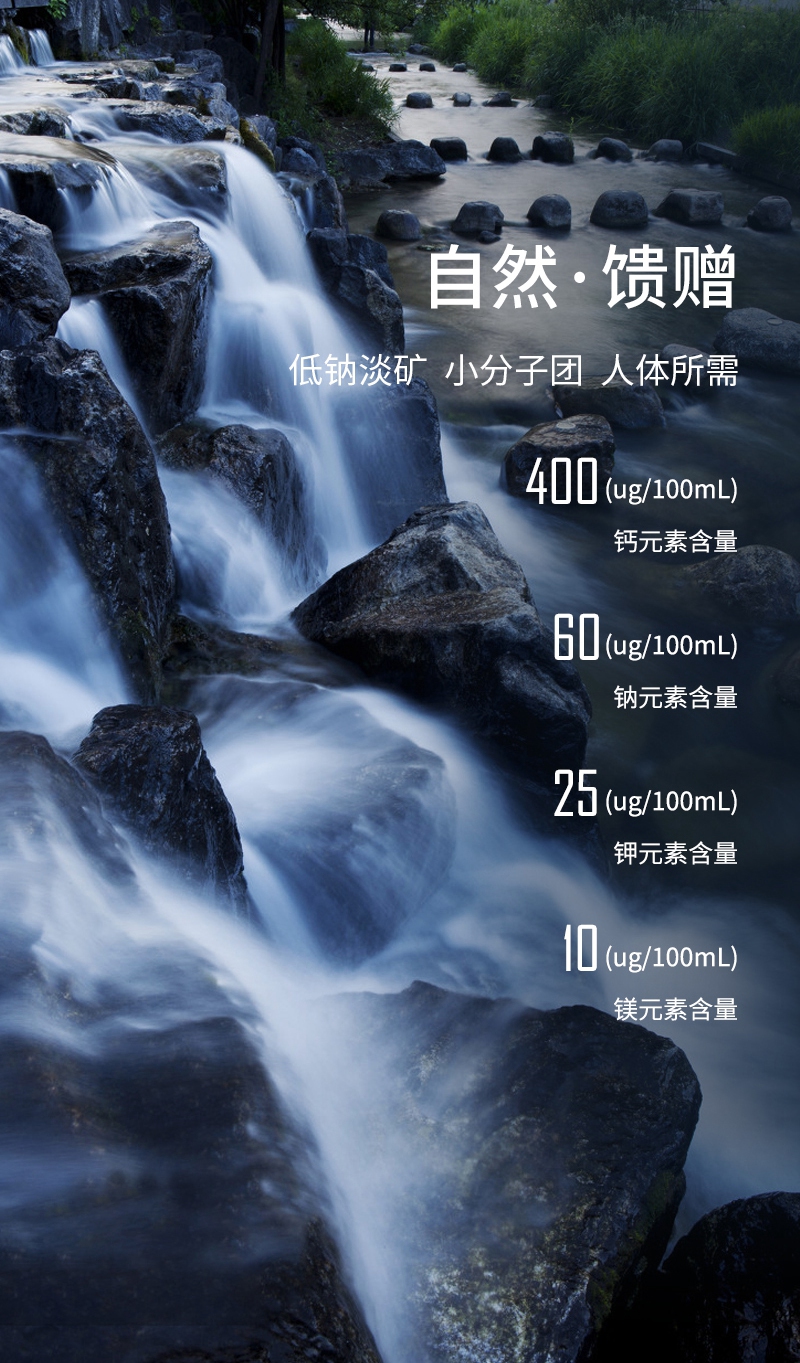 天然山泉|低鈉淡礦|小分子團|先進工藝|安全認證
