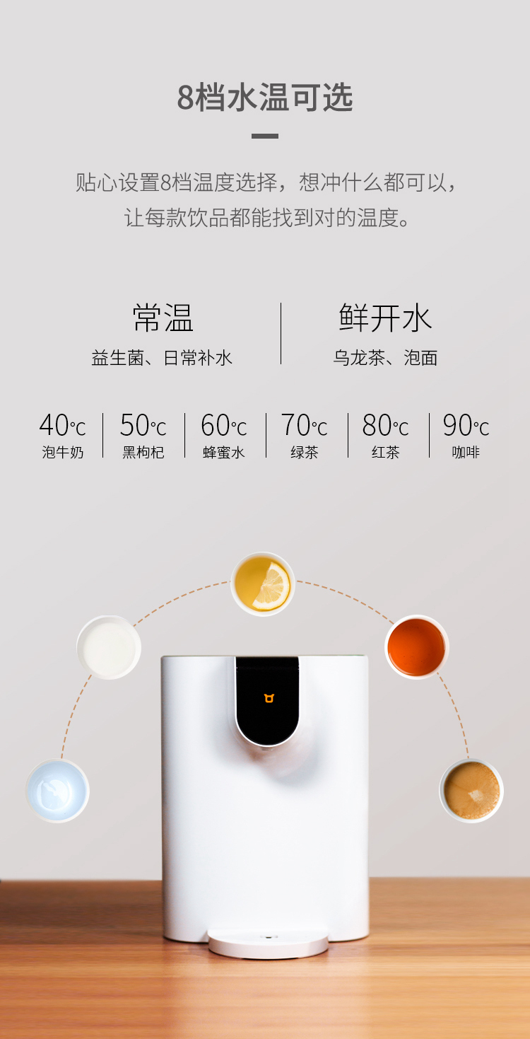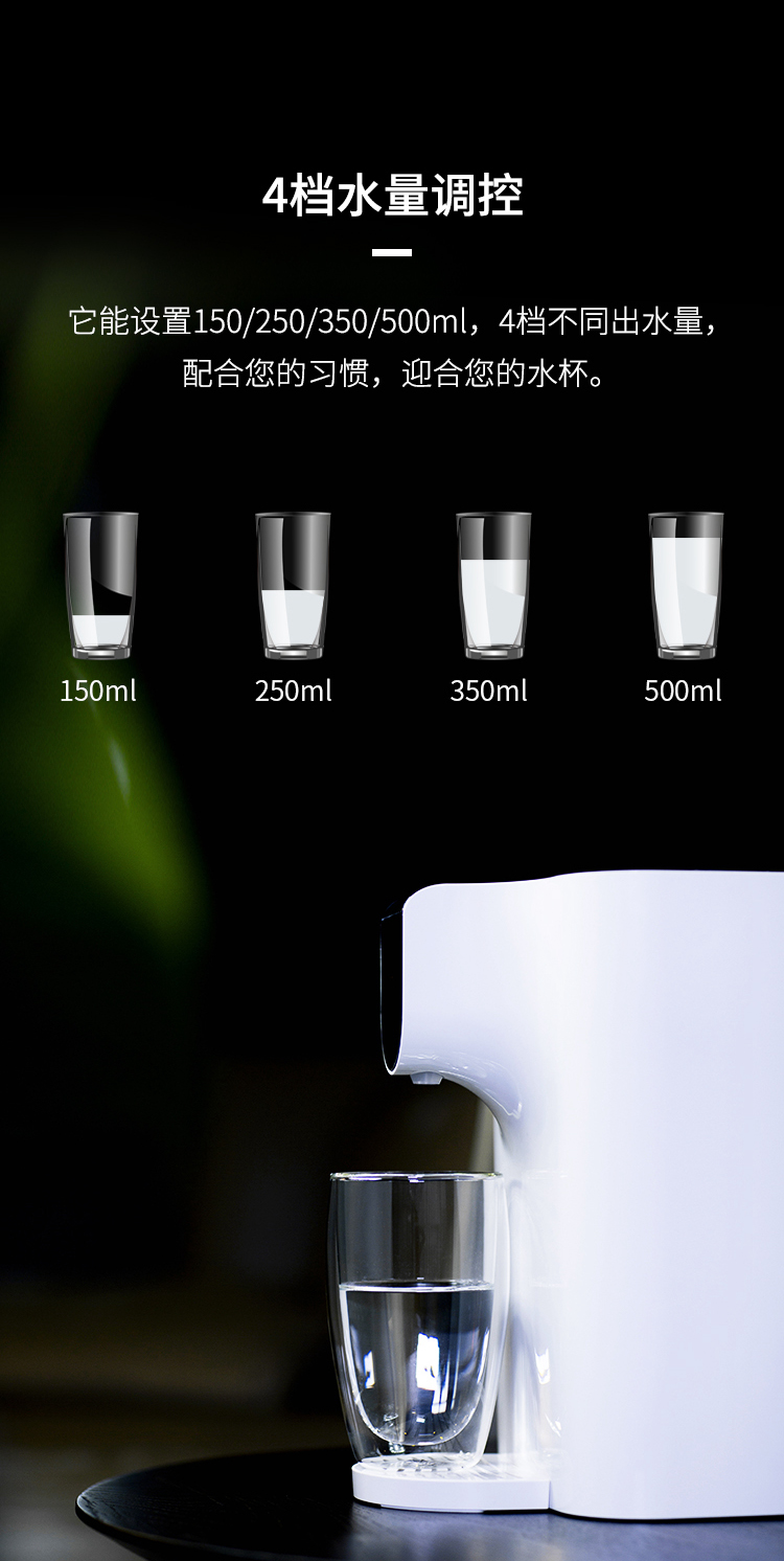 3秒快速加熱出水,轉(zhuǎn)瞬間擁有一杯溫度適宜的新鮮山泉水。8檔水溫可選,4檔水量調(diào)控,安全童鎖更放心,喝出健康鮮活水。
